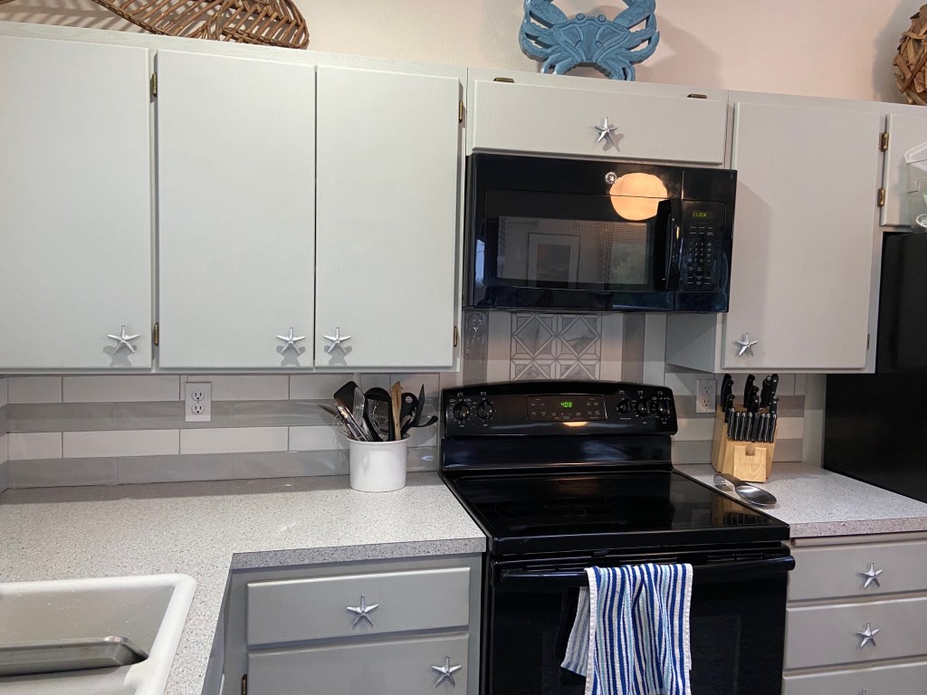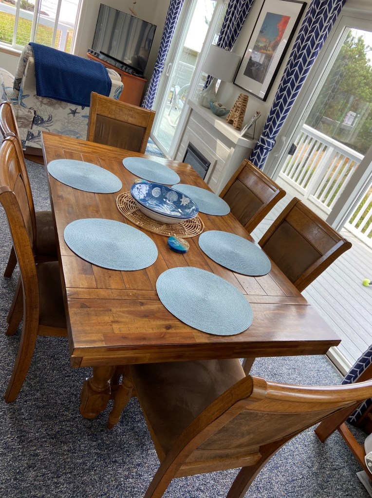 We have created a very comfortable space to enjoy with a small family or a couple of friends. We have plenty of bedding, linens and cleaning supplies, and a pet area in the utility room where you can find feeding and water bowls, waste bags, towels and wet wipes for those sandy paws. The deck wraps around from the front, all the way to the back of the house with a gate on each end in case you’ve got a runner.